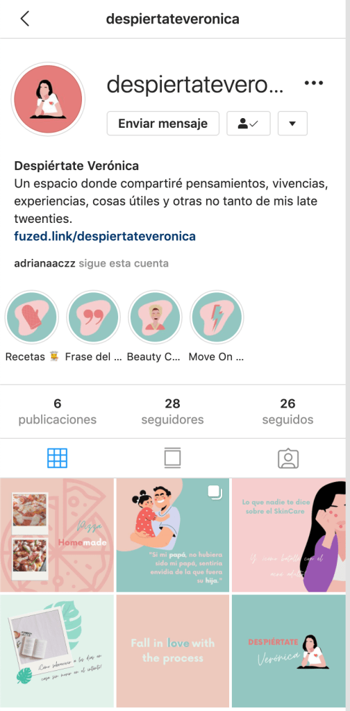 No fue como hasta hace un mes que estaba super emocionada por cómo me sentía escribiendo todos los días aquí que empecé a considerar abrir la cuenta. Me lo tomé con calma, demasiada. Vi muchas paletas de colores, opciones de diseño, tipografías, tipos de post, look del feed, tono de la comunicación hasta que poco a poco fui dándole forma a esta segunda etapa de Despiértate Verónica.