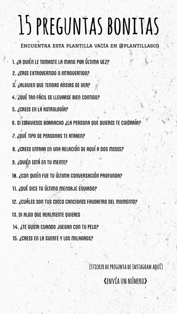 Buscando en Pinterest encontré esta plantilla de 15 preguntas bonitas, me pareció una buena idea responderlas por acá, así me conocen un poco más y me encantaría que ustedes también las respondieran. 🤗👇